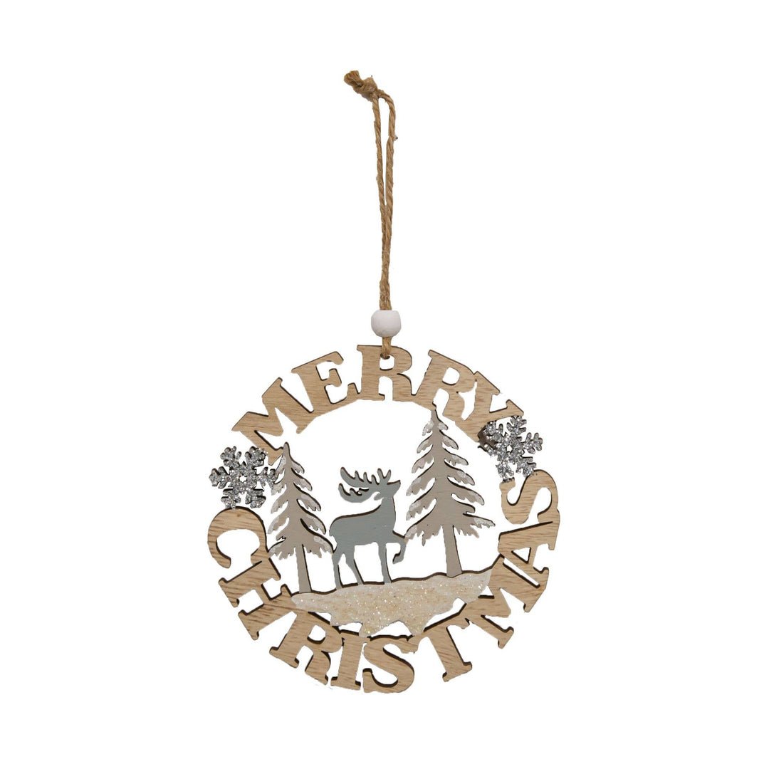 Merry Christmas Deer Cutout Wood Ornament